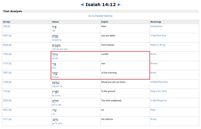 1. 개역성경은 루시퍼의 정체를 예수님으로 바꿈 '기름 부은 받은 그룹'인 루시퍼는 스스로 자신의 신분을 변경하기를 원하였다. 루시퍼의 야망은 지극히 높으신 이와 같이 되는 것인데, 모든 창조물들이 지극히 높으신 분이 아니라 자기에게 경배드리기를 갈망했다. (마 4:9)에 기록된 대로 그가 예수 그리스도께 "네가 만일 엎드려 내게 경배하면…"이라고 말한 것을 보아도 그의 욕망이 경배받는 것임이 확실하다. (계 12:9)은 그 큰 용이 '저 옛 뱀 곧 마귀라고도 하고 사탄이라고도 하는 자'라고 분명히 기록하면서 우리에게 루시퍼의 정체를 밝히 보여주고 있다. 대중 매체들은 사탄에 대해 느끼는 나쁜 이미지들을 바꾸어 경배받기에 합당한 좋은 이미지로 만들기 위해 그럴듯한 선전을 동원하고 있다. 그 핵심은 바로 그의 정체를 바꾸는 것이다. 1.1. 이사야 14장 12-17절 개역성경 12 너 아침의 아들 계명성이여 어찌 그리 하늘에서 떨어졌으며 너 열국을 엎은 자여 어찌 그리 땅에 찍혔는고 13 네가 네 마음에 이르기를 내가 하늘에 올라 하나님의 뭇 별 위에 내 자리를 높이리라 내가 북극 집회의 산 위에 앉으리라 14 가장 높은 구름에 올라가 지극히 높은 이와 같아지리라 하는도다 15 그러나 이제 네가 스올 곧 구덩이 맨 밑에 떨어짐을 당하리로다 16 너를 보는 이가 주목하여 너를 자세히 살펴 보며 말하기를 이 사람이 땅을 진동시키며 열국을 놀라게 하며 17 세계를 황무하게 하며 성읍을 파괴하며 그에게 사로잡힌 자들을 집으로 놓아 보내지 아니하던 자가 아니냐 하리로다 킹제임스 흠정역 12 오 아침의 아들 루시퍼야, 네가 어찌 하늘에서 떨어졌는가! 민족들을 약하게 한 자야, 네가 어찌 끊어져 땅바닥으로 떨어졌는가! 13 네가 네 마음속으로 이르기를, 내가 하늘로 올라가 내가 하나님의 별들 위로 내 왕좌를 높이리라. 내가 또한 북쪽의 옆면들에 있는 회중의 산 위에 앉으리라. 14내가 구름들이 있는 높은 곳 위로 올라가 내가 지극히 높으신 분과 같이 되리라, 하였도다. 15 그러나 너는 지옥으로 곧 그 구덩이의 옆면들로 끌려 내려가리라. 16 너를 보는 자들이 너를 자세히 살펴보고 너에 대해 깊이 생각하며 이르기를, 이자가 땅을 떨게 하고 왕국들을 흔들며